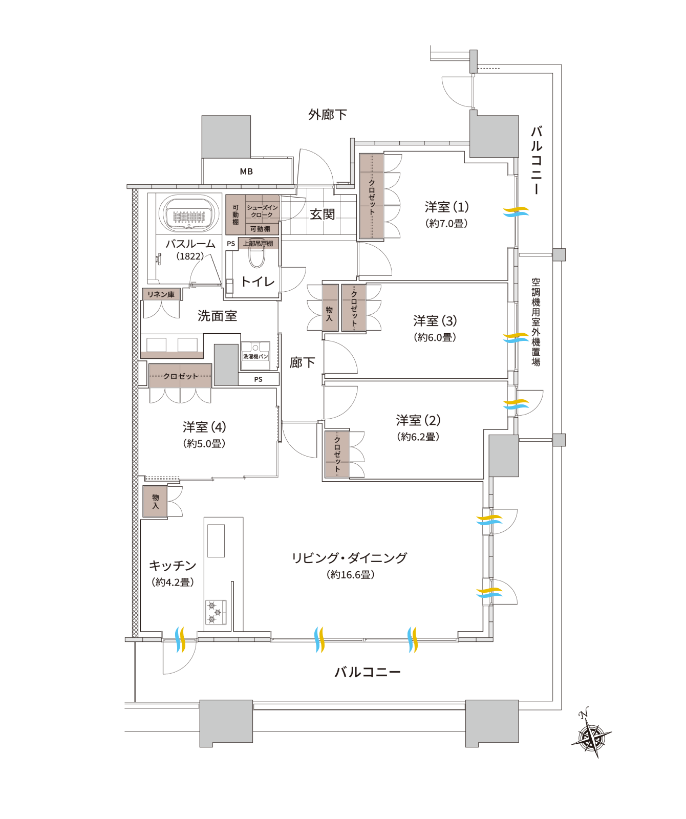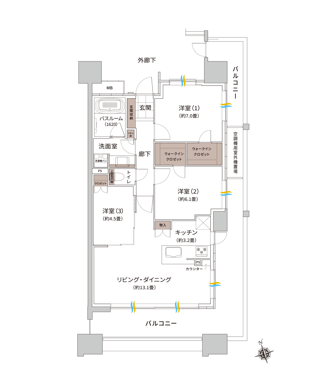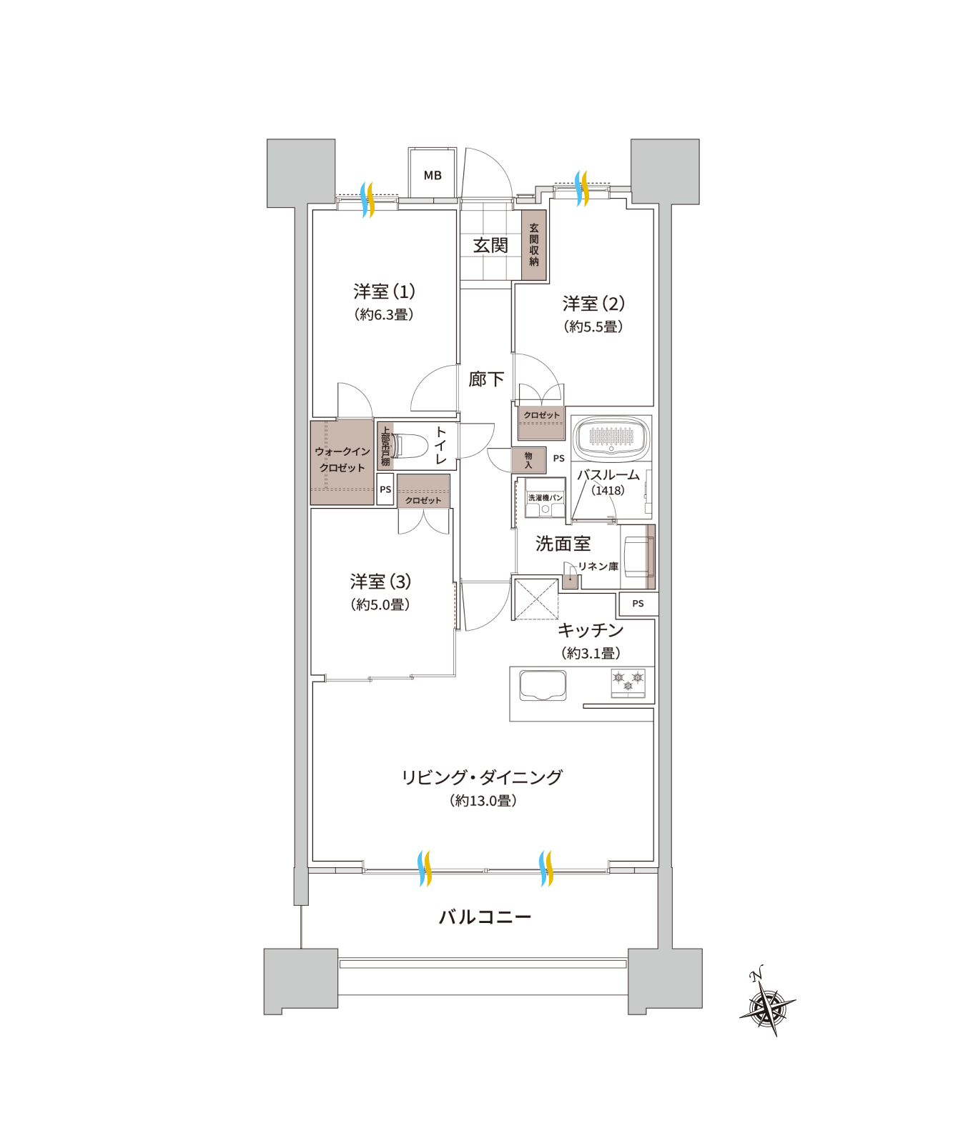 専有面積70㎡台、3LDK中心(一般分譲対象住戸185戸中94戸)