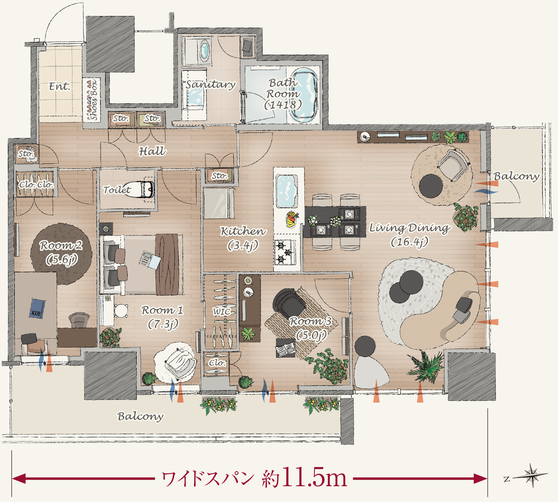 ゆとりの収納力を実現しました。すべての洋室がバルコニーに面した設計すべての洋室に開口部を設置。