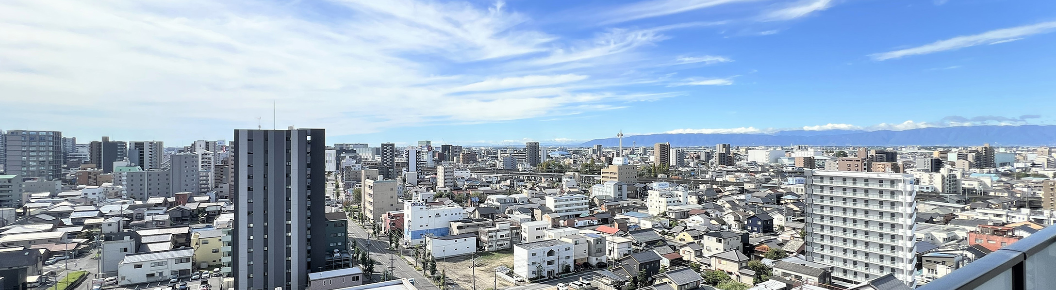● 掲載の眺望写真は現地14階の1404号室のバルコニーから南西方面および北方面を望んだものになります(2025年10月撮影)。