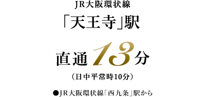 JR大阪環状線「西九条」駅からJR大阪環状線「大阪」駅、「天王寺」駅へダイレクトアクセス。