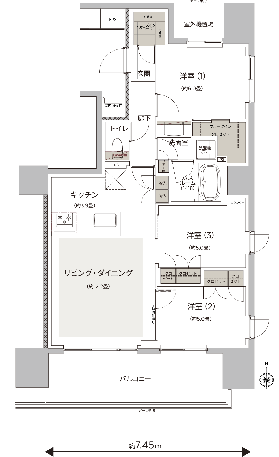 1フロア3邸、全邸角住戸の開放的なプランニング。