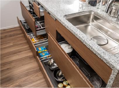 省エネ性をアップした高効率給湯器「エコジョーズ」を採用。風呂沸かし、給湯、床暖房、浴室暖房までを1台でこなします。