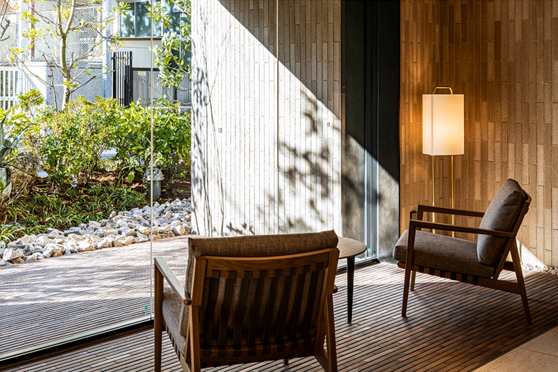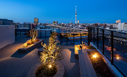 蔵前の歴史的な街並みと現代的な感性を融合させた集合住宅である。伝統と現代性が調和する街の魅力を住空間に取り入れ、建築と都市が連続性を持ってつながる構成が特徴的である。外構には、鉢植えや地植えを組み合わせた庭のようなデザインを採用し、街の風景と住まいの境界を曖昧にする工夫が施されている。ファサードには、ブリックタイルや槌目調の金属パネルなど、手仕事の温もりを感じさせる素材を用い、蔵前らしい「粋」を表現している。共用部は、閉鎖的な作業空間ではなく、庭と一体化したラウンジや眺望を活かした屋上テラスなど、開放感のある設計がなされている。住戸内には、フレキシブルなキッチンやスマートボックスなど、現代の多様なライフスタイルに対応した設備を導入しており、コンパクトながらも快適性と機能性を両立させた設計は、単身者やDINKs世代にとって使い勝手の良い住環境を提供している。街の記憶を尊重しながらも、新しい生活価値を提案するプロジェクトであり、都市型住宅の一つの方向性を示している。