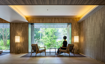 台東区は賃貸マンションの供給が過剰となる一方で分譲マンションの供給は少ない傾向がある。現地は浅草橋・蔵前駅から徒歩圏内、隅田川テラスが近く、幹線道路から一本入った落ち着いた住環境にあり、都心で定住志向の人向けに分譲マンションを企画する上では好立地にあった。蔵前は昭和初期に建てられた歴史ある近代建築が現代でも活用されており、どこか懐かしさが残る街並みを形成している。また、古くから製造業を営む事業者が多く、ものづくりを中心としたまちづくりが行われており、クラフトマンシップ溢れるカフェや雑貨店が数多く存在する。そんな「手仕事」を軸に、人とのつながりが感じられる街にインスピレーションを受け、「Nostalgic Modern」というデザインコンセプトを構築。時代や流行にとらわれないスタイルを持ちつつ新しい価値を提供し、伝統とモダンが共存する街と建築が一体となった、魅力ある生活空間の創出を目指した。